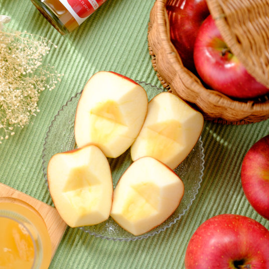 中川果樹園のこだわりは樹上完熟してからの収穫。樹上完熟することで、りんご本来の凝縮された甘みと奥深い味わいを引き出すことができます。お客さまからも「中川果樹園のりんごを一度食べると他のりんごはもう食べられない!」とのお声を多く頂きます。シナノスイートは酸味が少なく、甘みが強いのが特徴の品種。小さなおこさまから大人まで食べやすく、近年人気。