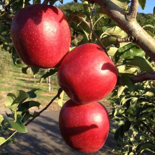 酸味が少なく優しく濃厚な甘味が特徴的なリンゴです。果汁もたっぷり含まれていて噛み締めると甘いリンゴの果汁が口の中いっぱいに広がります。リンゴの酸味が苦手な方やお子様などにも好評の品種ですので是非ご賞味ください。