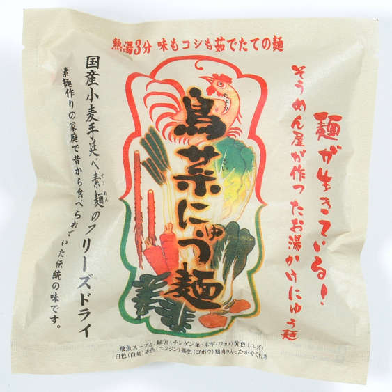 <鳥菜にゅうめんかやく>味付け鶏肉、白菜、わかめ、ねぎ、チンゲン菜、人参、ごぼう、ゆず、酸化防止剤(ビタミンE)