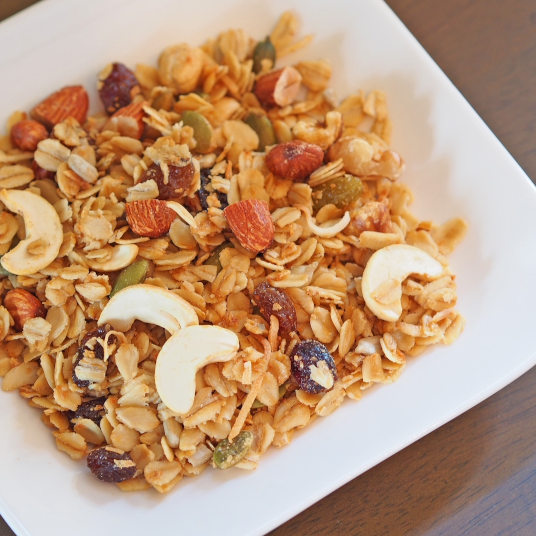 【素材】【オリジナルグラノーラ】有機オーツ(米国産)、なたね油(埼玉県熊谷市産菜種使用)、有機メープルシロップ、レーズン、ヒマワリの種、アーモンド、クルミ、かぼちゃの種、クランベリー、ブラウンシュガー、カシューナッツ、ココナッツ、グリーンレーズン、サルタナレーズン、塩