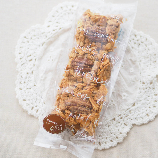 【素材】有機オーツ、有機メープルシロップ、アーモンド、ピーカンナッツ、なたね油(埼玉県熊谷市産菜種使用)、マロンパウダー、塩