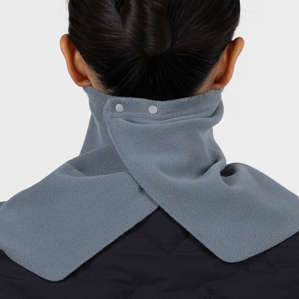 スナップボタンで開閉するタイプのネックゲーターです。帽子やゴーグルを装着したままでも簡単に着脱できます。フィット感は3段階に調節でき、ずれ落ちにくくなっています。