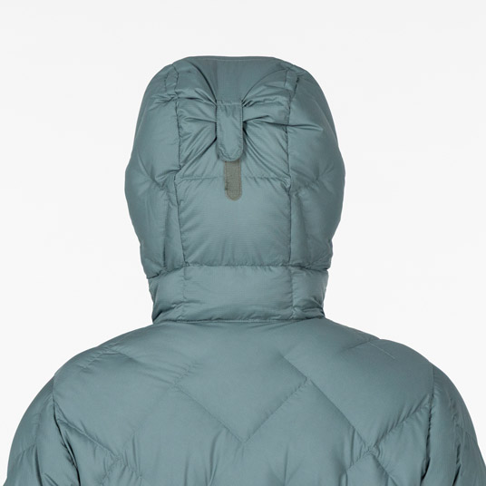 【収納サイズ】φ14 x 22cm【特長】独自のキルティングパターン / ダウンプルーフ加工 / デュアルアクスルフード / シングルキルト構造 / ジッパーがあごに当たらない仕様 / リードインコード・システム / スタッフバッグ付き【ポケット】4個(ジッパー付き〈腰2〉、ジッパーなし〈内2〉)