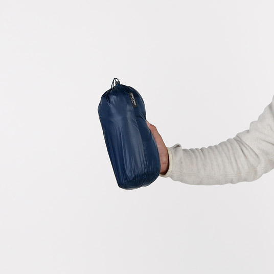 必要最小限の縫い目で中綿の片寄りを防ぎ、熱の放出を抑える独自のデザイン。コールドスポットとなる縫い目を従来より大幅に減らし、保温効率を高めながら、軽量化にも寄与しています。