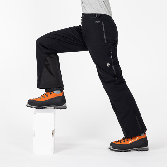 バックカントリースキーやスノーボードに適したモデルです。屈曲性に優れた立体裁断を施し、ややゆったりとしたシルエットに仕上げています。エッジガードは大きめ。裾幅はスキーブーツに対応する「ワイドタイプ」です。