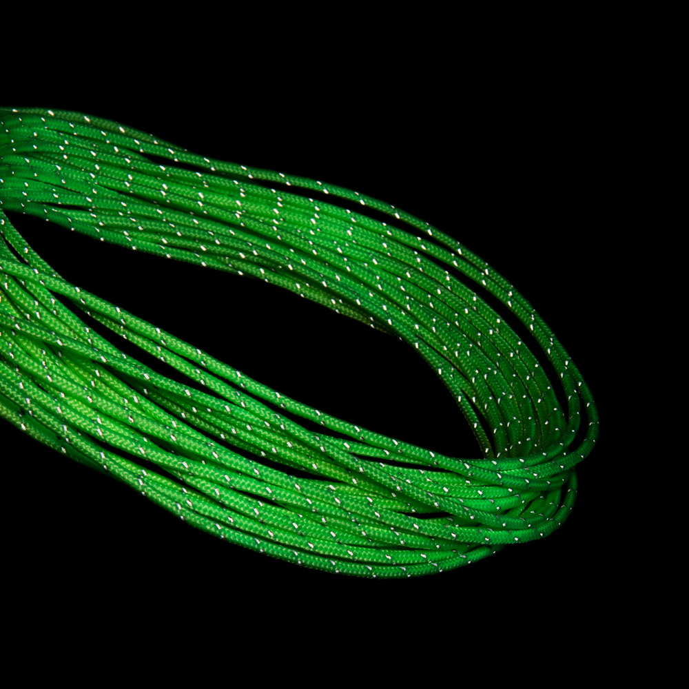 反射と蓄光の機能を併せ持ち、暗闇での視認性を高めたコードです。1m単位でお求めいただけます。ご希望の長さを選択してください。登山やキャンプなどアウトドアで広く使用できます。(クライミン用ではありません。破断強度を超えるような負荷がかかる物体の固定や人体の安全確保を目的とした使用はできません)