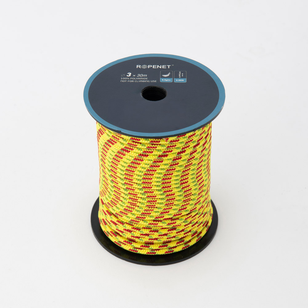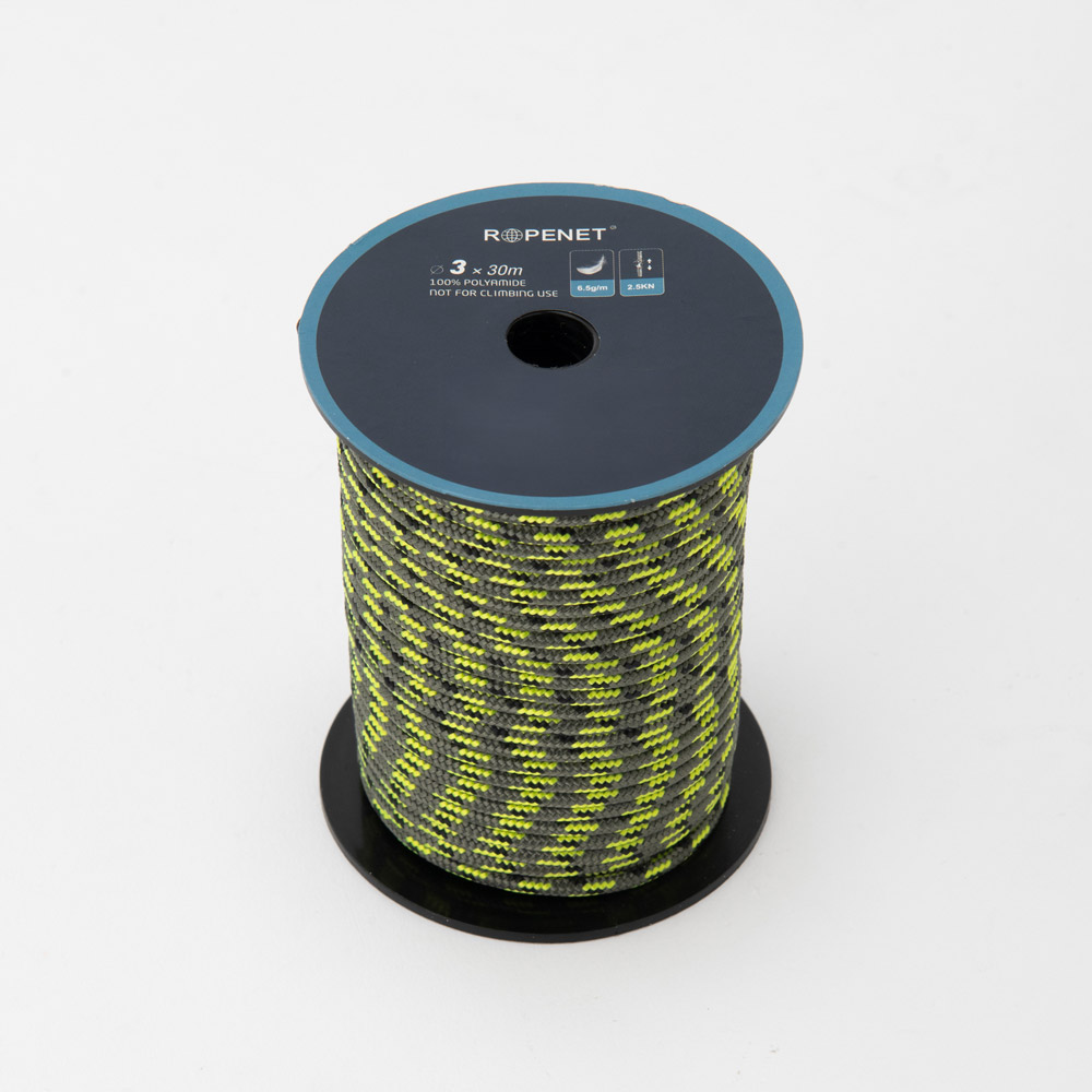 さまざまな用途に使えるナイロン製のアクセサリーコードです。30m巻きの大容量タイプ。巻き芯が付属し、収納と管理にも便利です。登山やキャンプなどアウトドアで広く使用できます。(クライミン用ではありません。破断強度を超えるような負荷がかかる物体の固定や人体の安全確保を目的とした使用はできません)