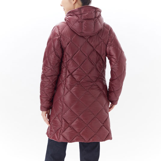 大変軽量でコンパクトに収納できる膝丈の女性用ダウンコートです。超高品質800フィルパワー・EXダウンを、しなやかな軽量シェル素材で包み込み、軽やかな暖かさを実現しました。ウエストを程よくシェイプさせた女性らしいデザインを採用。普段使いやトラベルでの携行に最適です。
