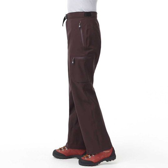 ストレッチ性を備えた独自の防水透湿性素材と膝部分に施した立体裁断により、優れた運動性を実現。山行の前後にも着用しやすいシンプルなデザインです。