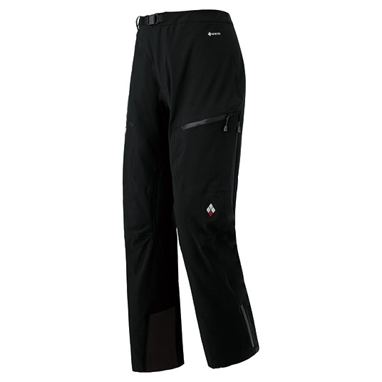 ストレッチ性を備えた高強度素材を全面に使用し、標高3,000mを超える冬山縦走やアイスクライミングにも対応するモデルです。軽量な1枚地ながら、裏面には適度な保温性を備えています。腰回りの圧迫感がなく動きやすいシルエットです。裾をやや細くすることで足捌きがしやすくなっています。