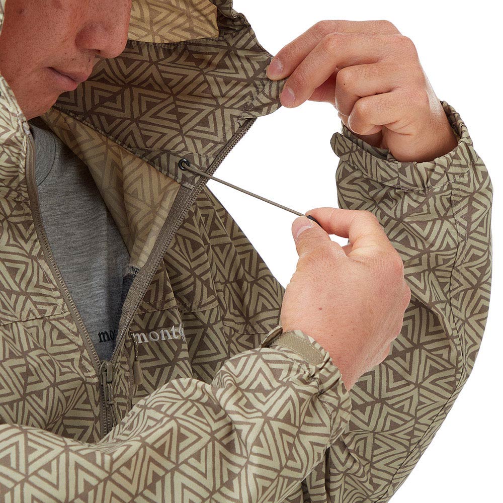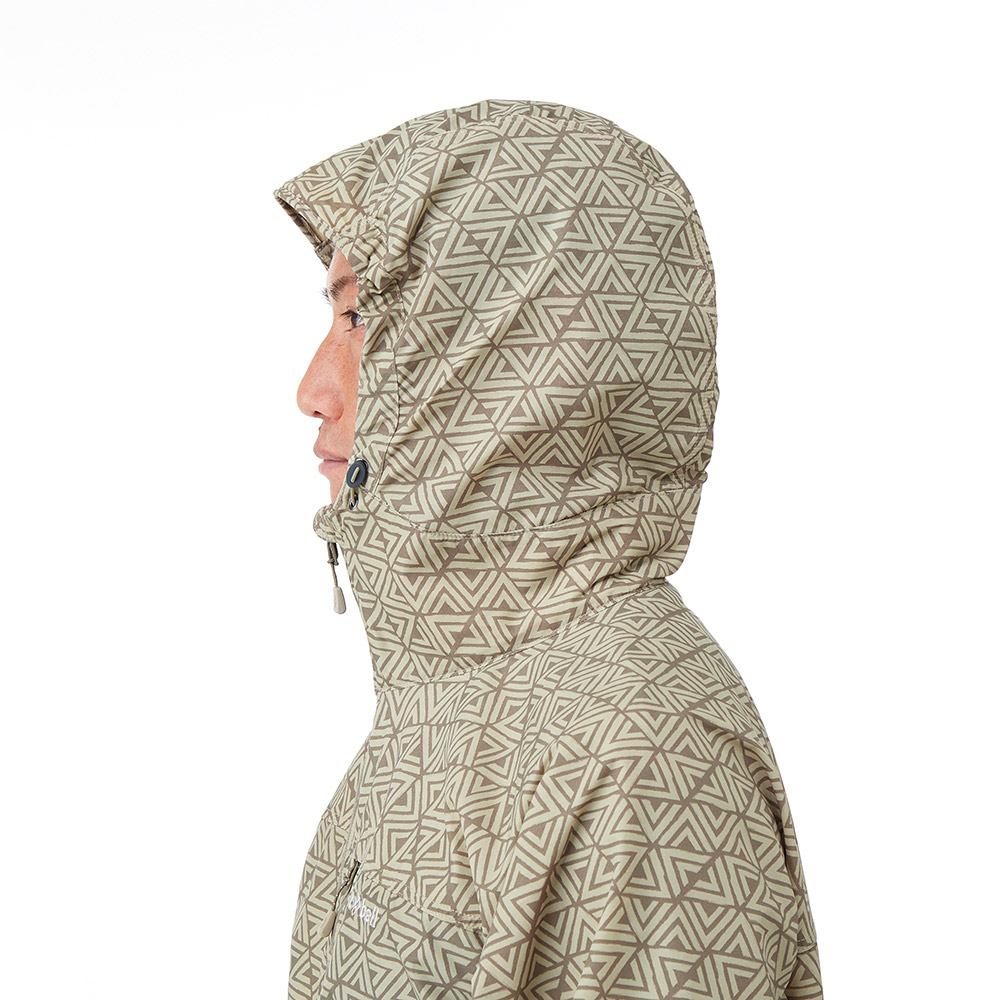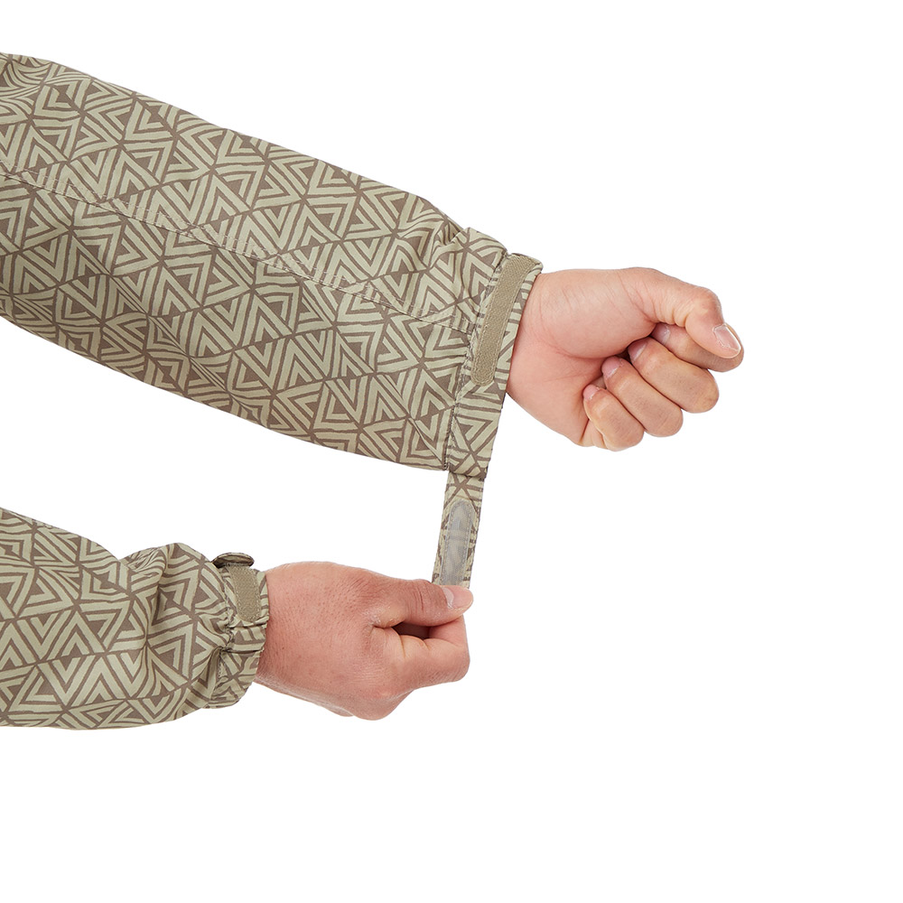 コットンのような風合いを持つプリントパーカです。適度なゆとりを持たせたシルエットで、軽やかな着心地。リードインコード・システムとアルパインカフで裾と袖を調節できます。