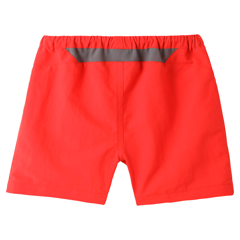 水辺での遊びに最適な、軽やかなショーツです。丈夫で乾きが速い生地にはっ水加工を施しているため保水しにくく、水から上がった後も冷えを最小限に抑えることができます。水遊び用のオムツを履いた上から着用できるサイズです。